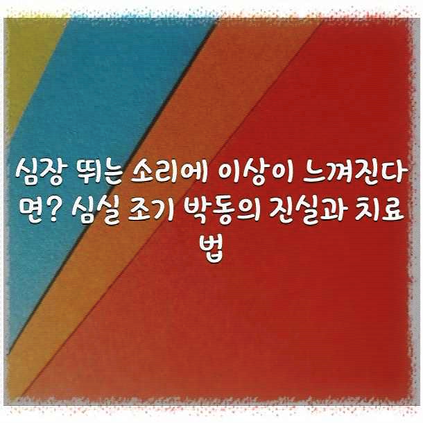 심장 뛰는 소리에 이상이 느껴진다면? 심실 조기 박동의 진실과 치료법 관련내용 확인 해 보시겠습니다.