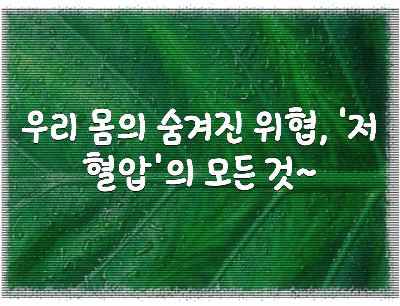 정리드린 정보는 우리 몸의 숨겨진 위협, '저혈압'의 모든 것~ 관련입니다. 좋은 정보가 되셨으면 합니다.