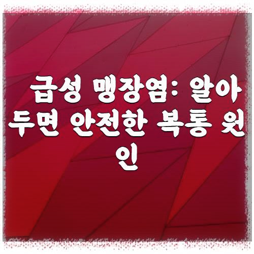정리드린 정보는 급성 맹장염: 알아두면 안전한 복통 원인 관련 정리 입니다. 찾으시는 분들에게 좋은 정보가 될수있길 바랍니다.