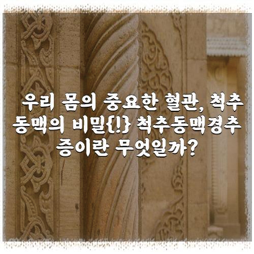우리 몸의 중요한 혈관, 척추동맥의 비밀 척추동맥경추증이란 무엇일까?